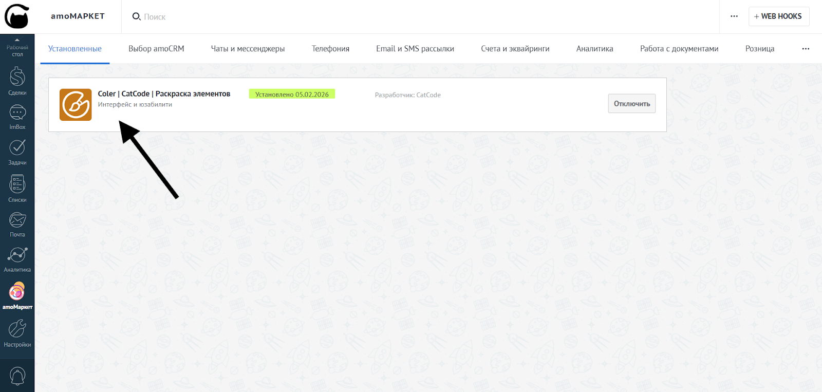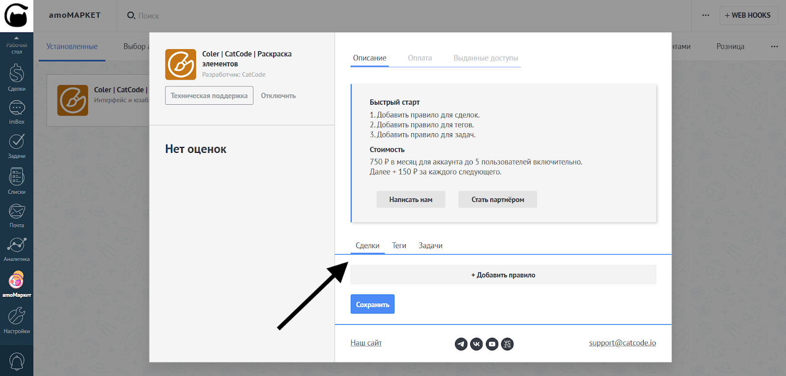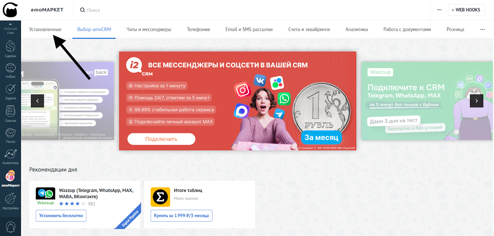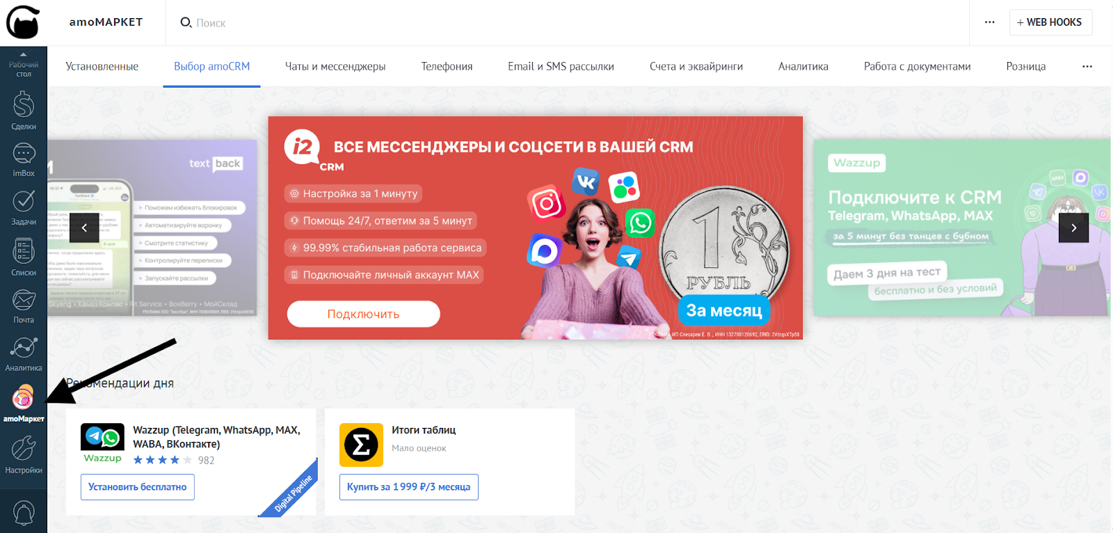 - Зайдите в «amoМаркет»: