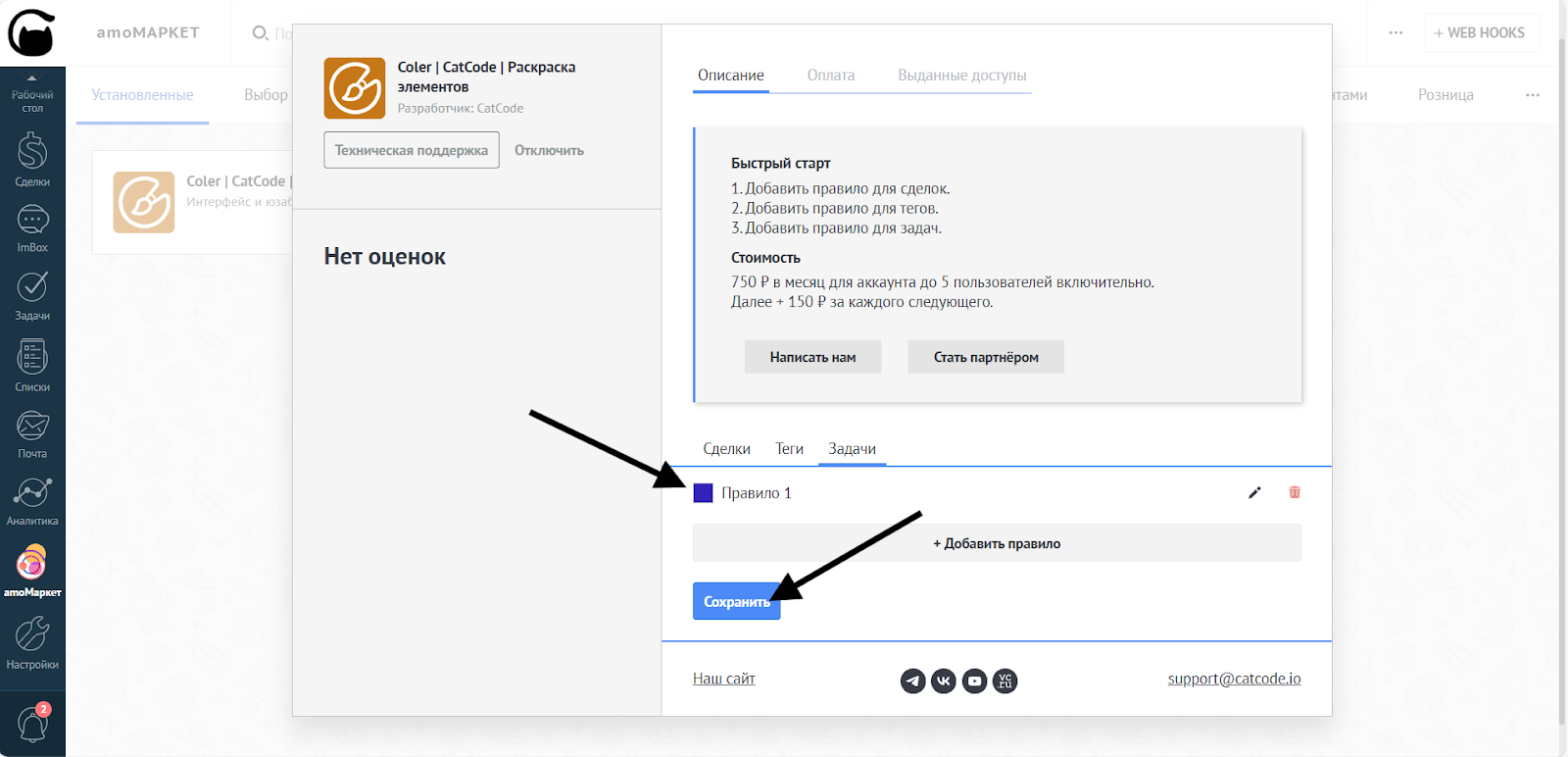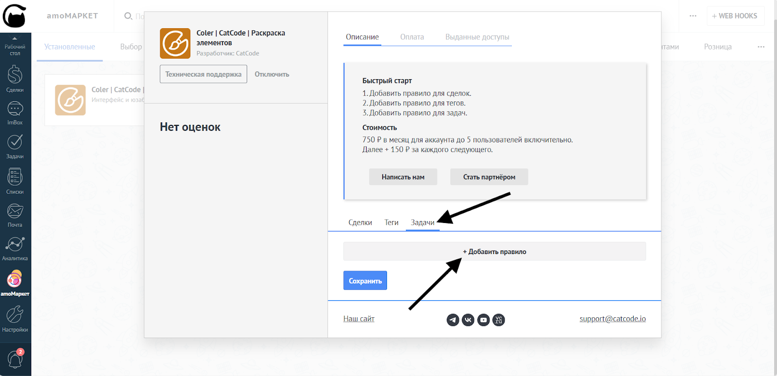 - В настройках Coler выберите «Задачи» и нажмите «Добавить правило»: