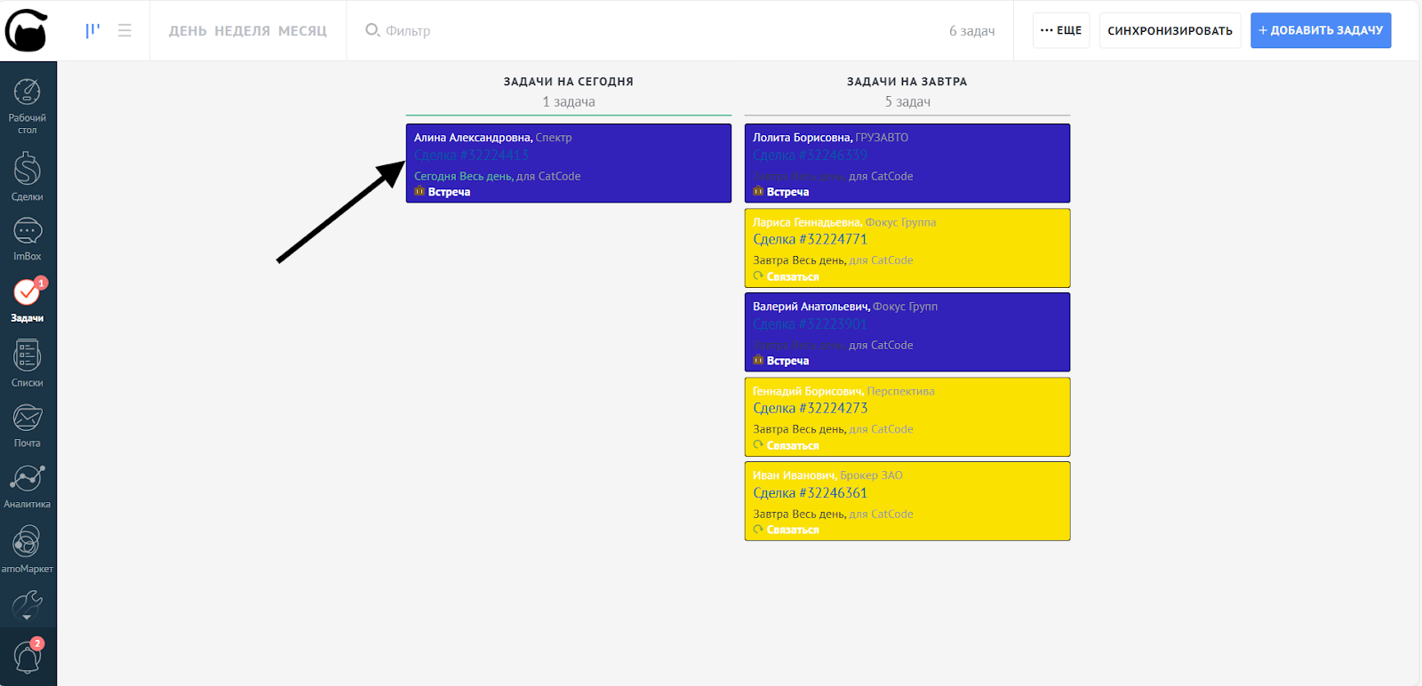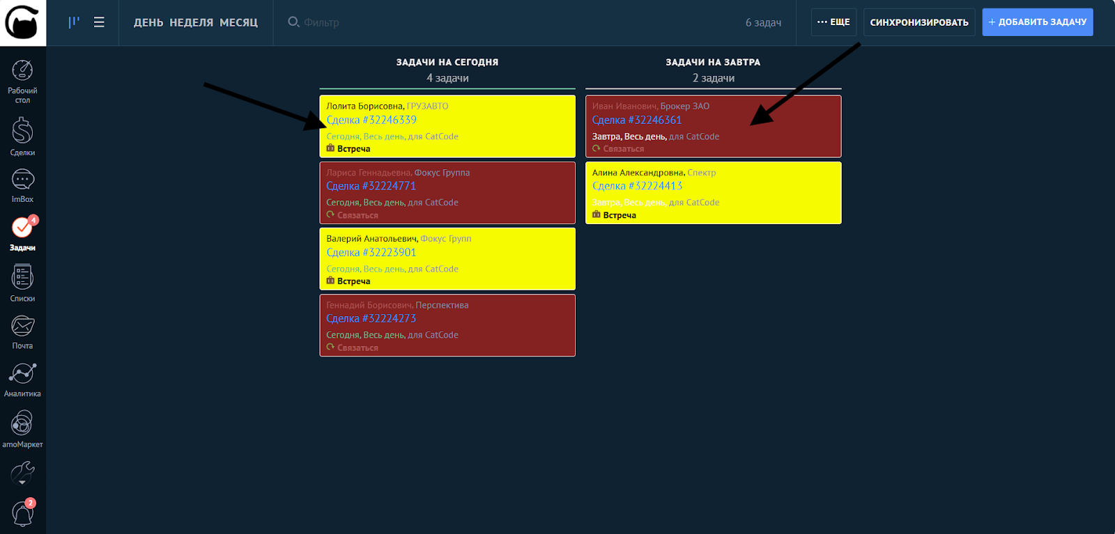 Менеджер сможет быстрее контролировать дедлайны, выделять просроченные задачи и разделять звонки/встречи по цветам.