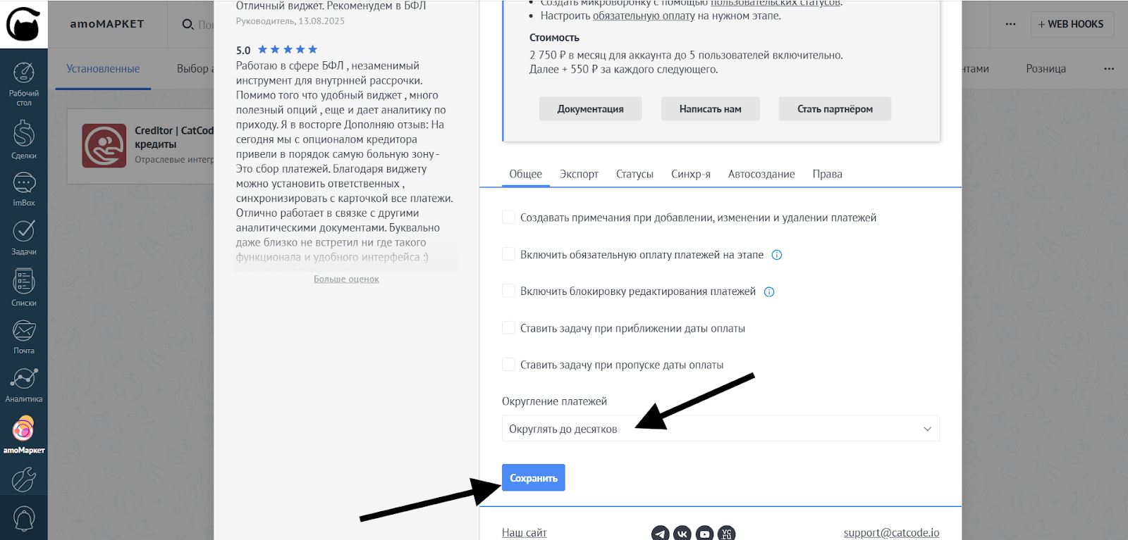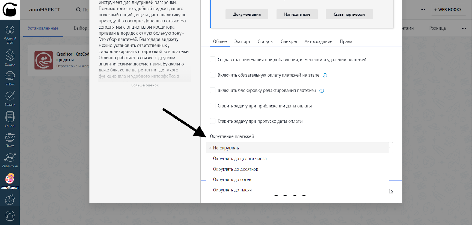 Доступны следующие варианты округления платежей: