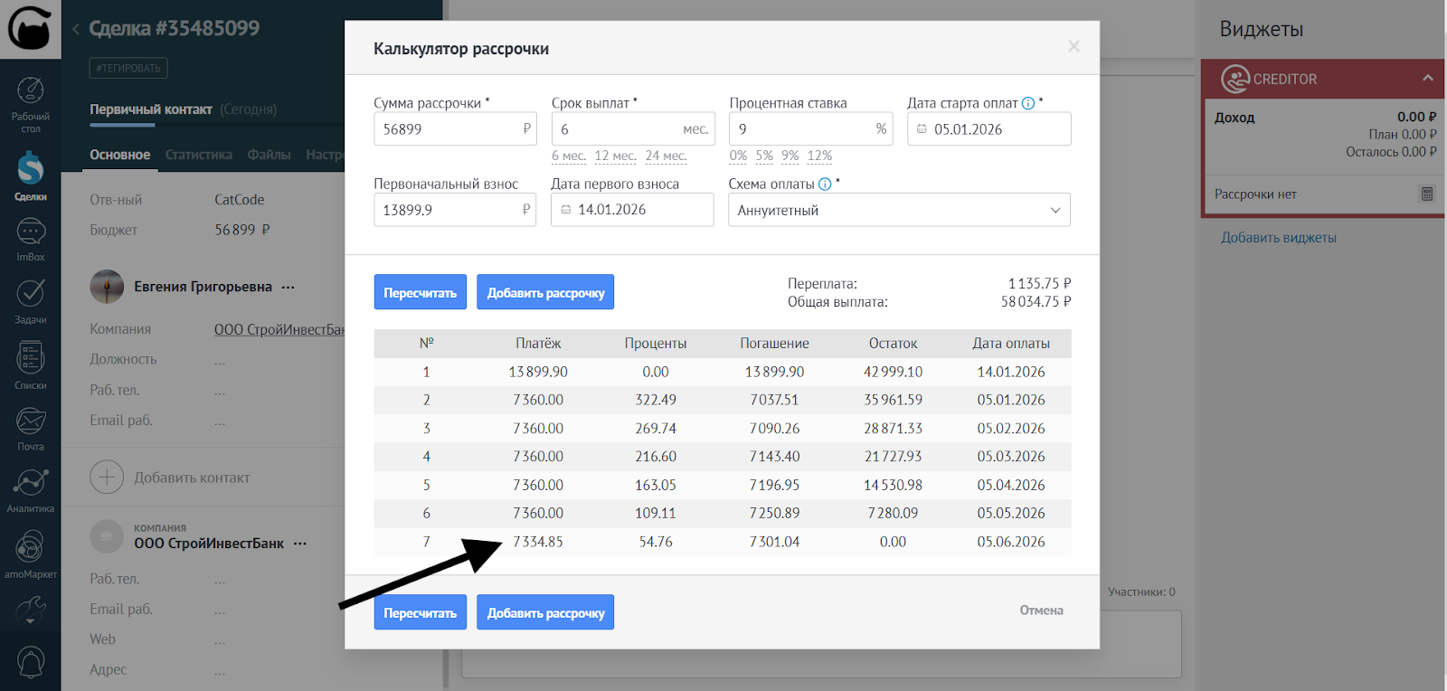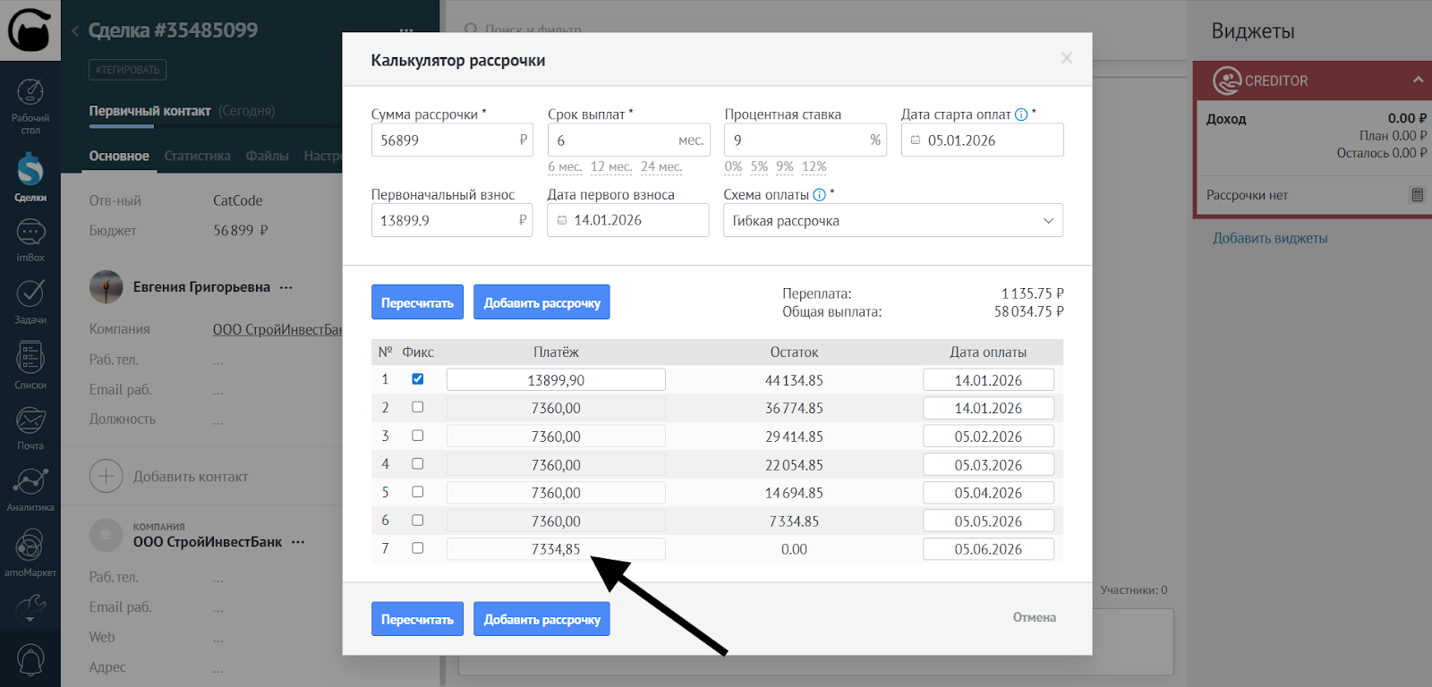 - В случае с гибкой рассрочкой фиксированные платежи не округляются: