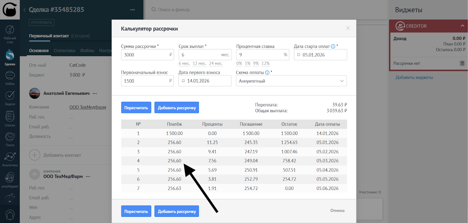 - Если округлить сумму до выбранного значения невозможно, округление не применяется. Например, если применили округление до тысяч, а платежи в рассрочке по 256 рублей, тогда округление не применяется: